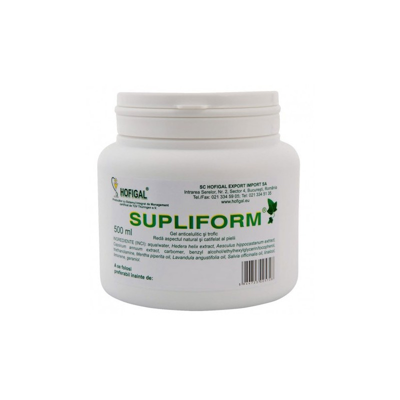 Produsul cosmetic Hofigal Supliform, datorita substantelor bioactive din compozitie si a efectelor sinergice dintre acestea, reface potentialul biologic al pielii si contribuie la mentinerea sanatatii ei.